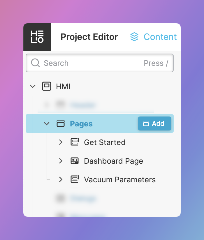 HMI Content Tree, and click the