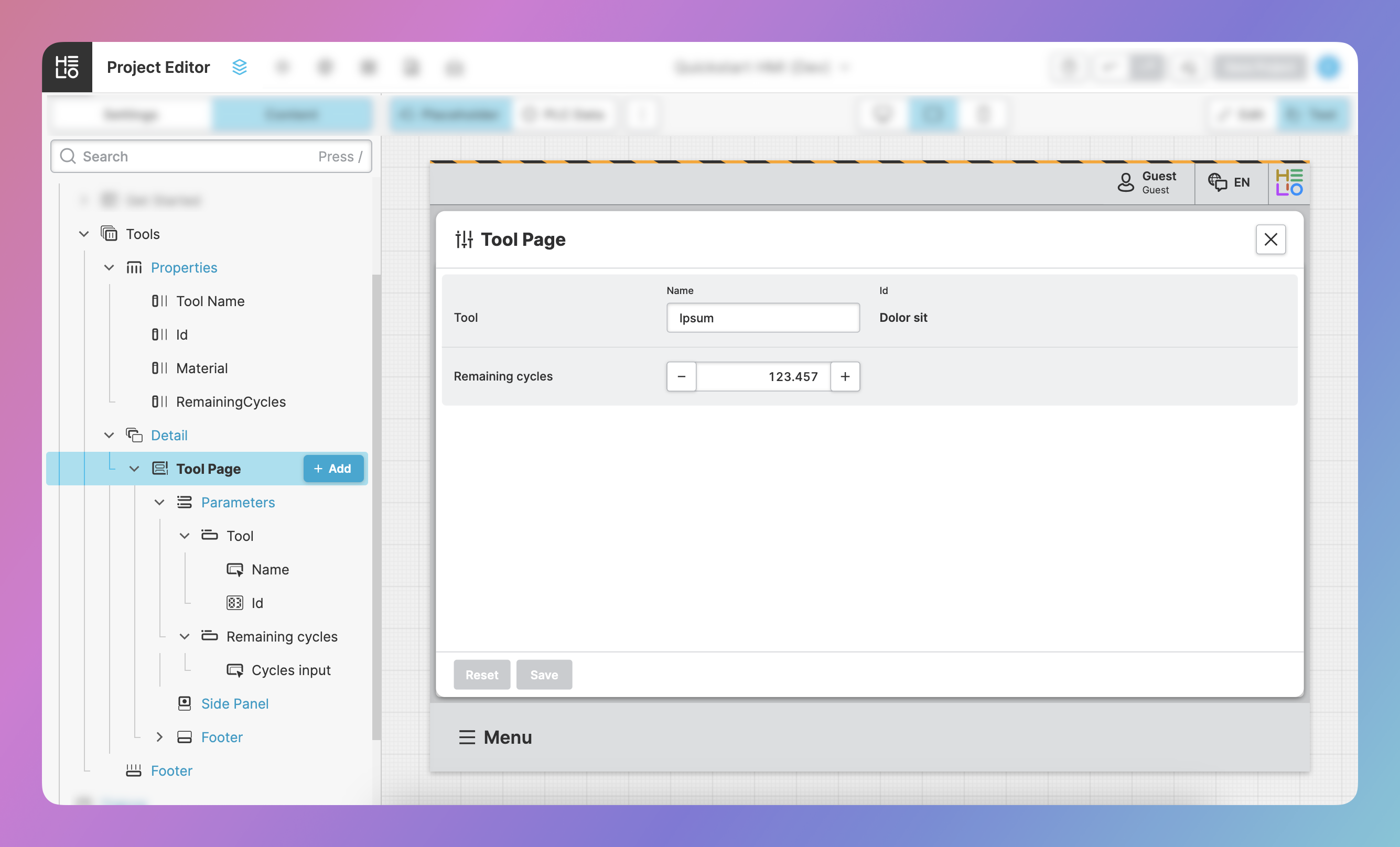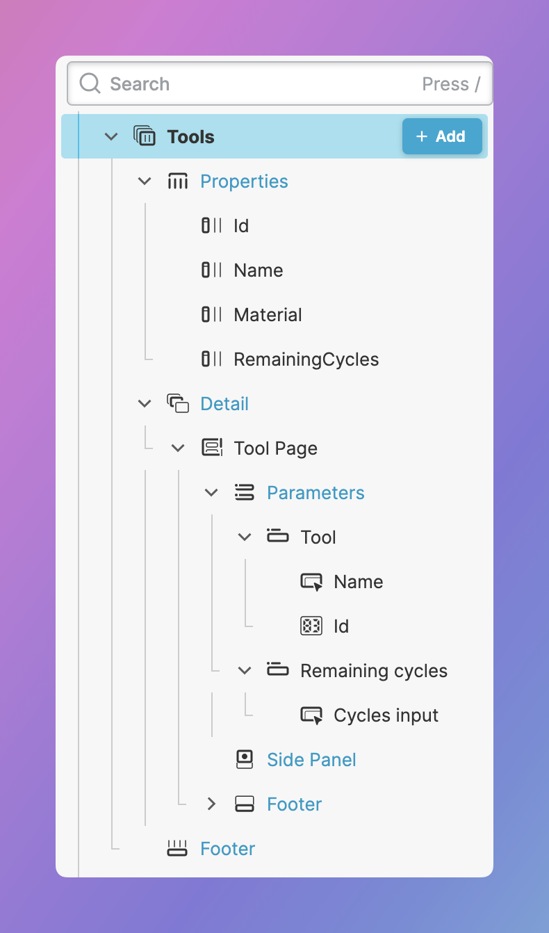 Now that you've learned how to set up any parameter page you need, let's add some more pages to our HMI. In this step we will be adding a CollectionPage to display a list of tools.