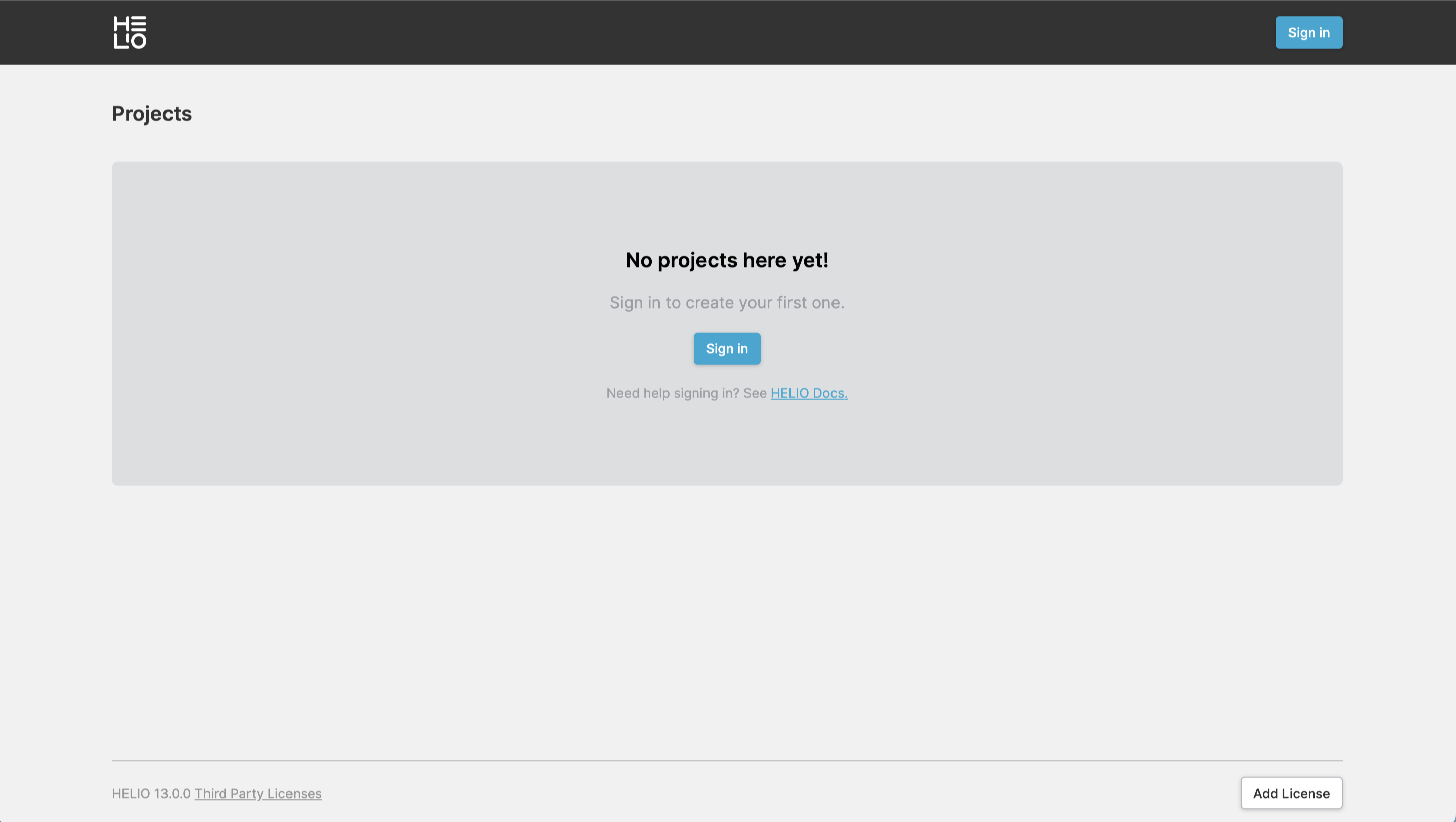 Once you're in, you'll see there aren't any projects yet. But no worries, HELIO has got you covered with three builtin templates to get you started.