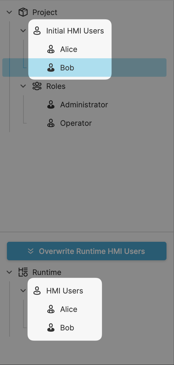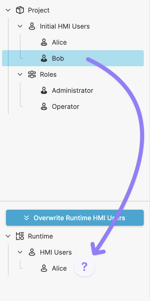 Fortunately, this isn't a significant issue. Simply click Overwrite Runtime HMI Users