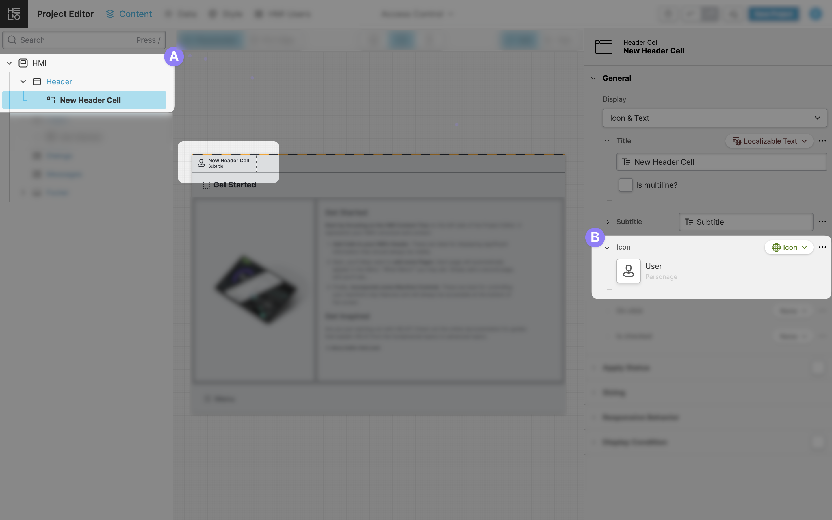 To do so, switch back to Content View and follow the steps to create a Header Cell that displays information about the current user: