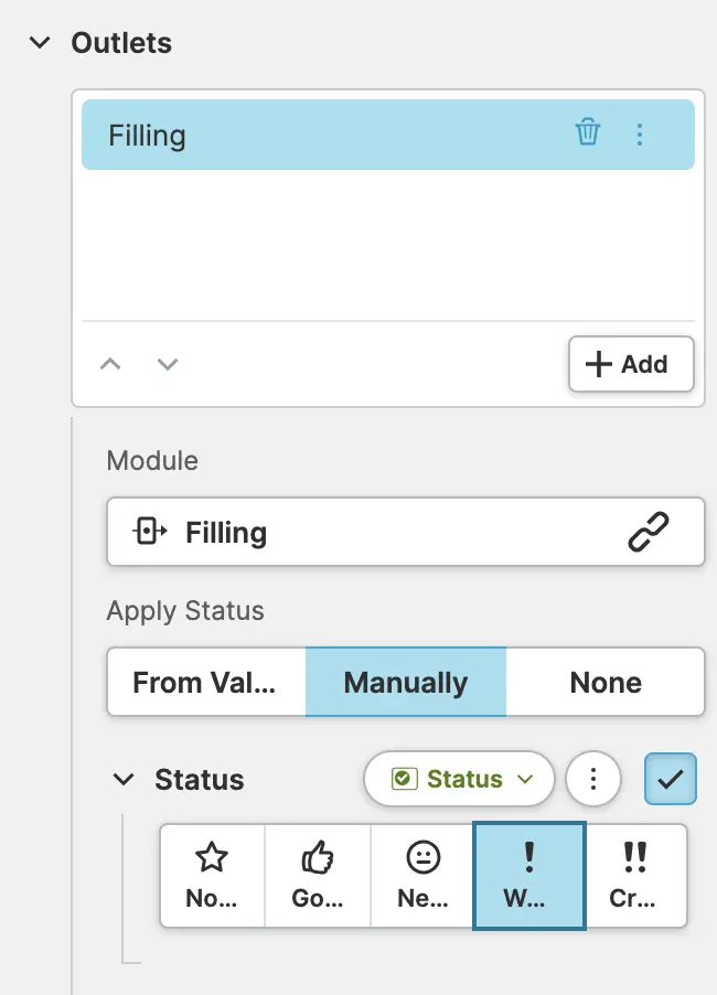 Another common task within workflows is indicating that a step or outlet is running or active. In this example, production is still running, and there are cartons left. Therefore, let's set the outlet to active.
