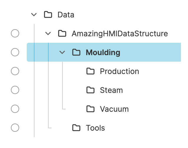In this example, the product team wanted to organize the data according to how it's used in the HMI. But feel free to create any structure that suits your needs.
