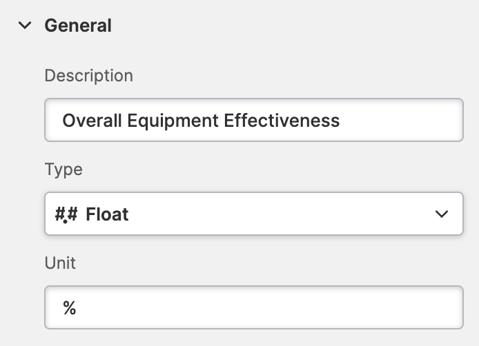 Once you've created a variable, you can set its name right away if you want to. You can always change it later if you feel the need. For this example choose OEE as the name.