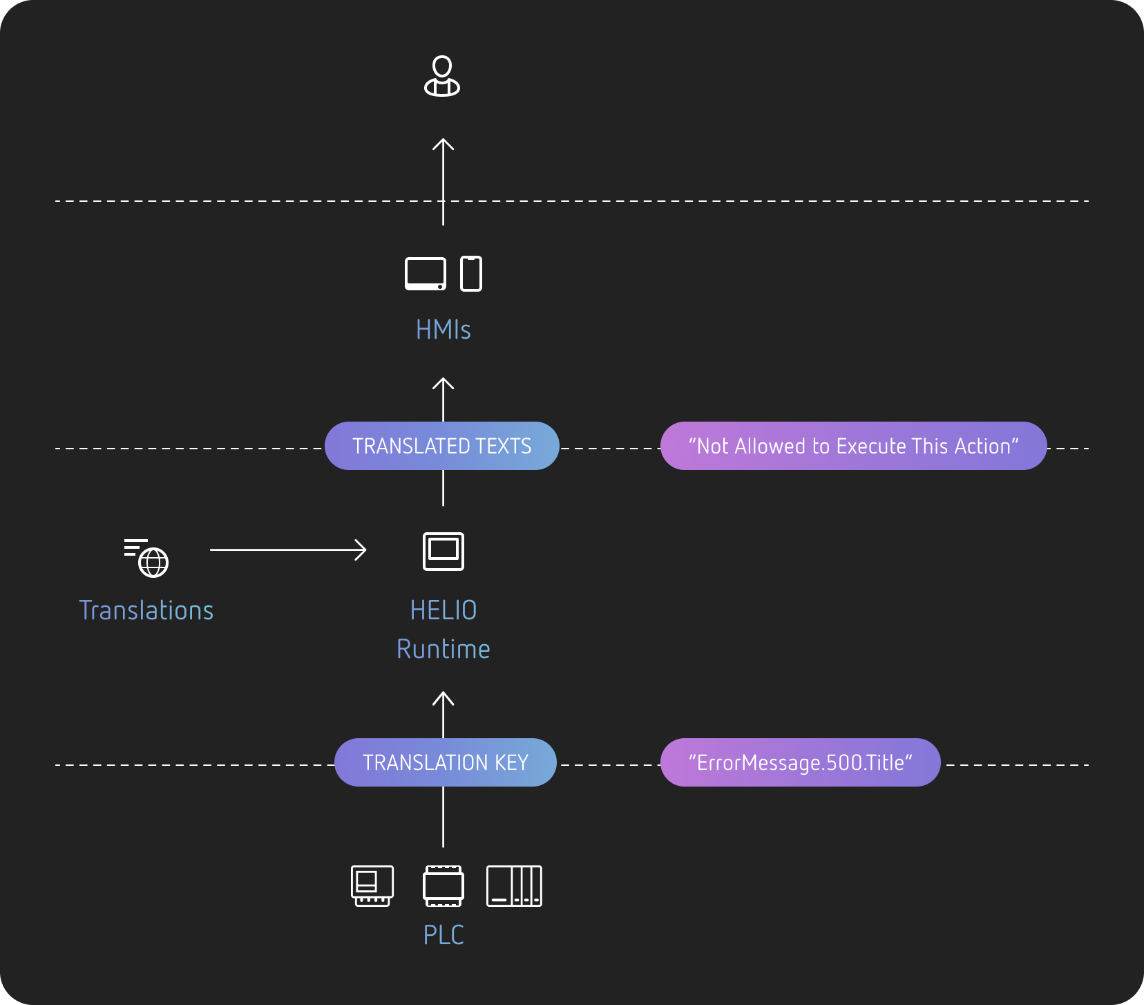 , along with appropriate translations for each language. - You're done! HELIO will now ensure that the values provided by your PLC are displayed in the currently active language inside the HMI.