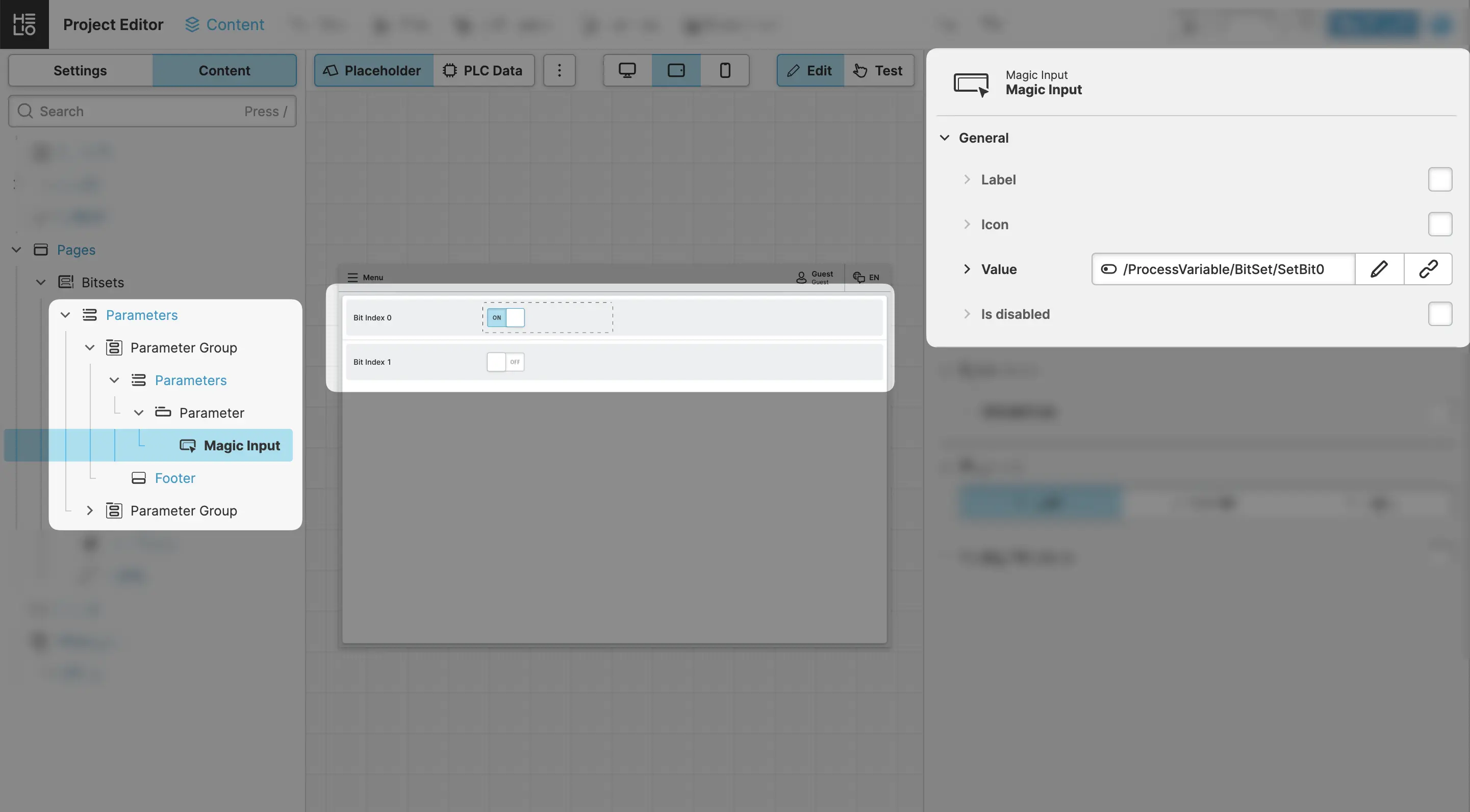 Next we're gonna need two Magic Input elements so we can toggle our Boolean simulation variables we imported into our HMI in a previous step.