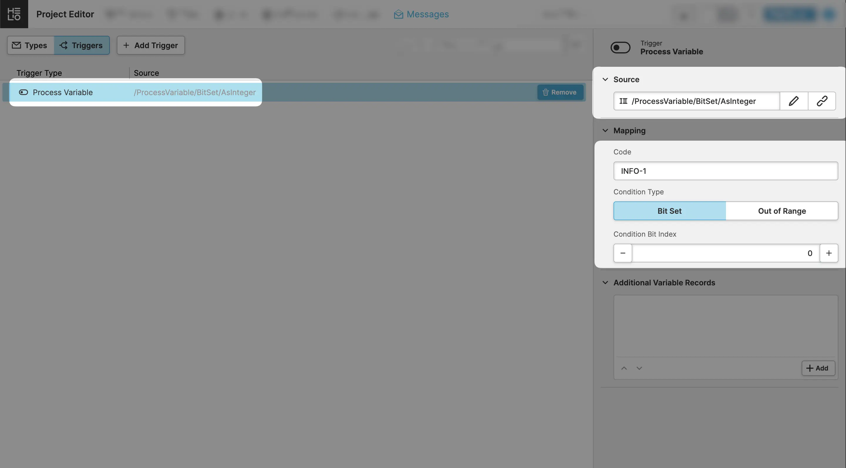 Next, we need to create a variable that we can use to trigger messages based on certain bits. Fortunately, there's already one we can use. Let's add it to our project.