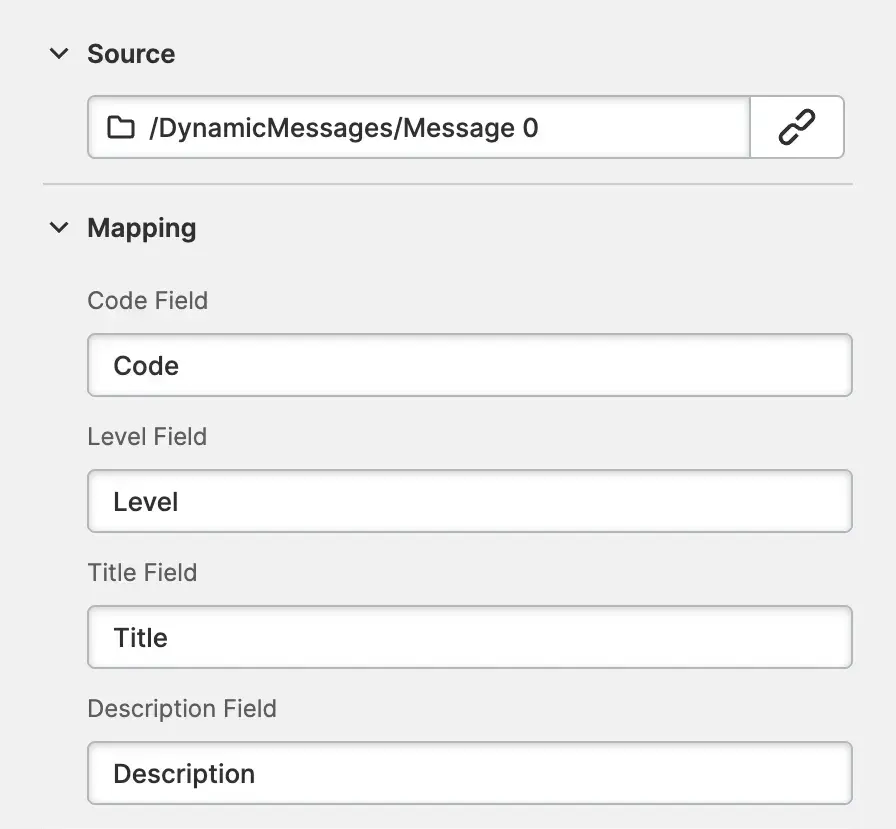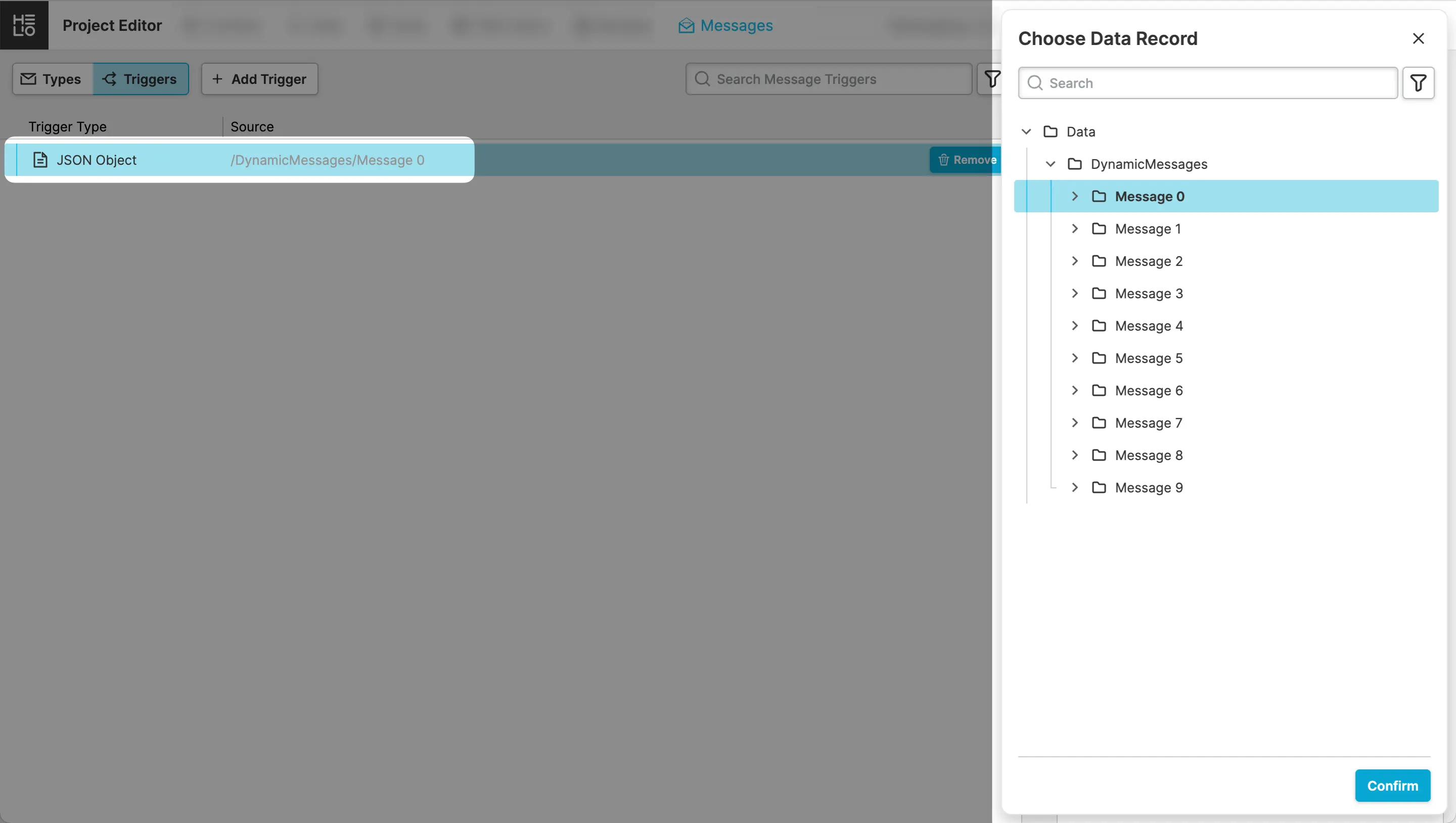 In previous HELIO versions (25.1 and below), structured objects could be represented as a data directory with message properties as child variables. This is still supported in HELIO 25.2.0 and later versions to support older project configurations without breaking existing projects. For newer projects, use the new Dynamic Message Triggers introduced in HELIO 25.2.0. They allow you to select a variable for each message property instead of specifying a property name, which is a bit more secure since HELIO can verify if this variable still exists.