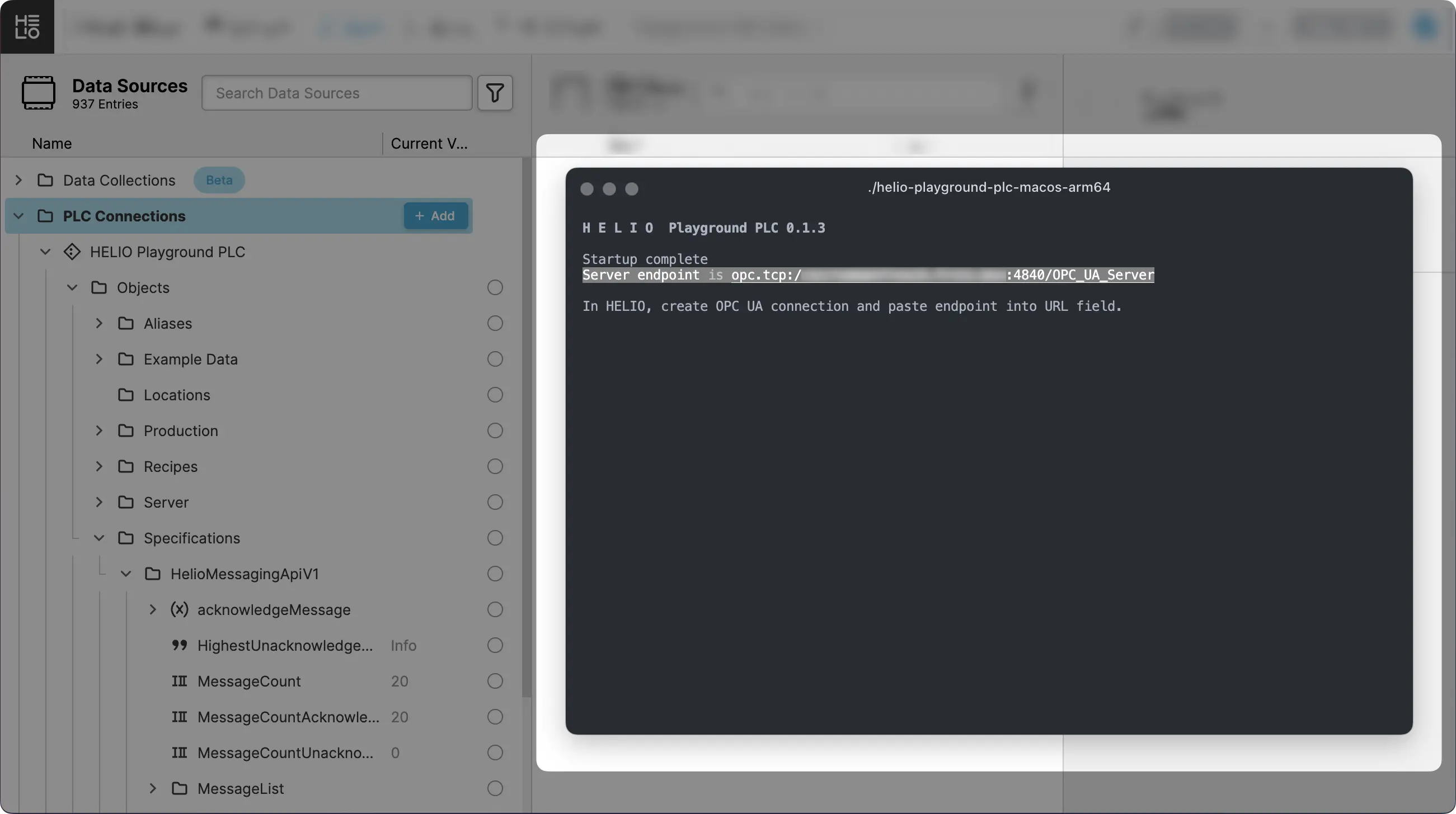 It's a software-based demo PLC that you can download for free and run on your development computer right away. A handy tool when you want to learn how to connect HELIO to an industrial machine that communicates using OPC-UA.