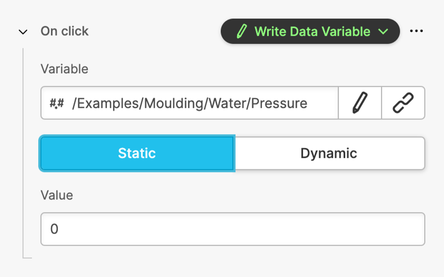 Writing dynamic values means that you use the current value of another variable. This means the value that gets written can change during the runtime of your HMI.