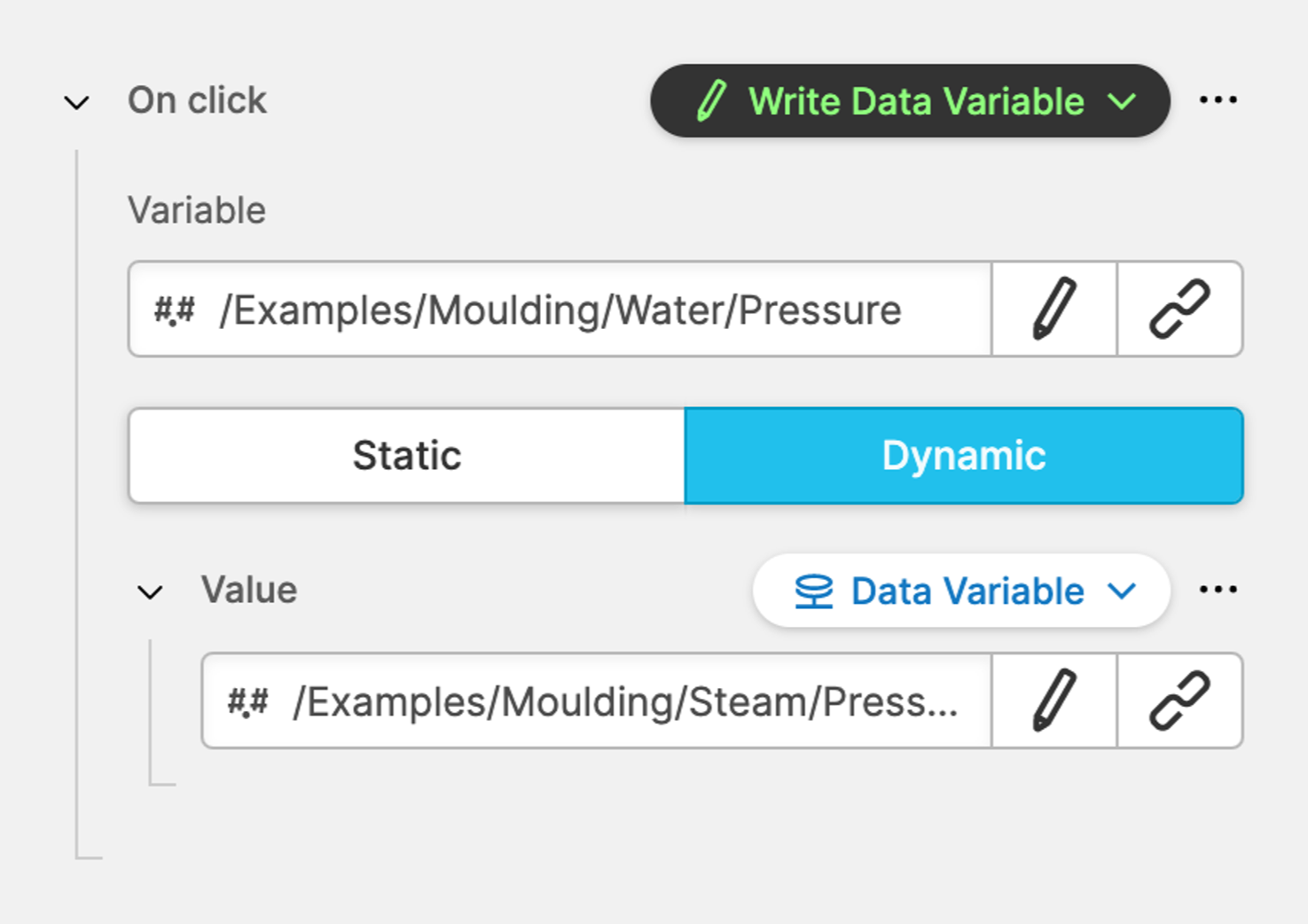 In this example the Water/Pressure variable will be set to the current value of the Steam/Pressure variable.