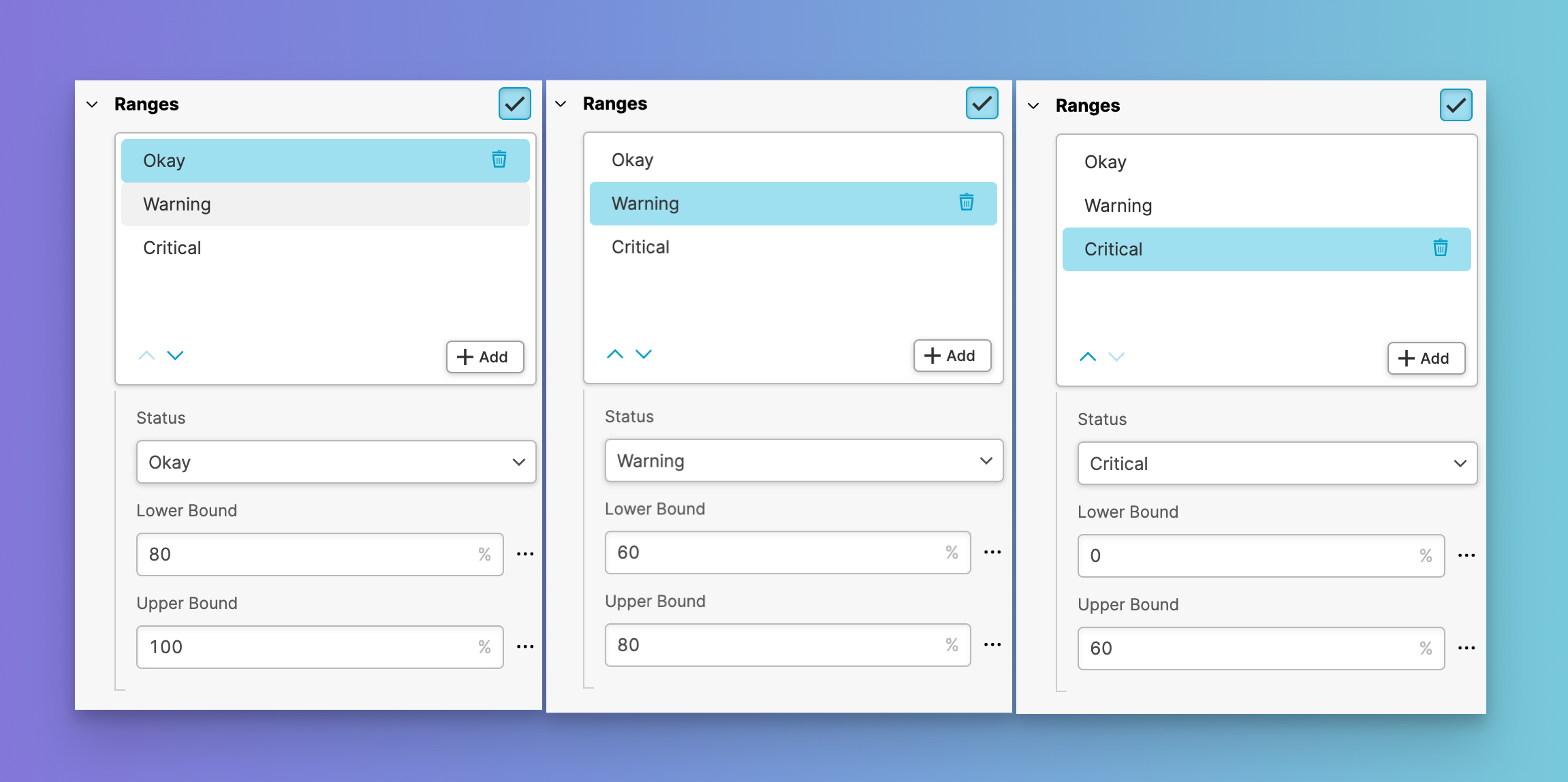 Each range is tied to a specific status, which will inform your operators about the quality of the current value of the variable.