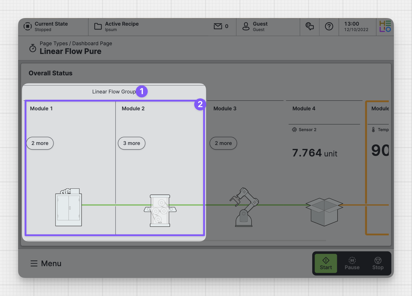 That’s why the Linear Flow gives you an overview of the most important elements of a machine, or a data flow with the most important