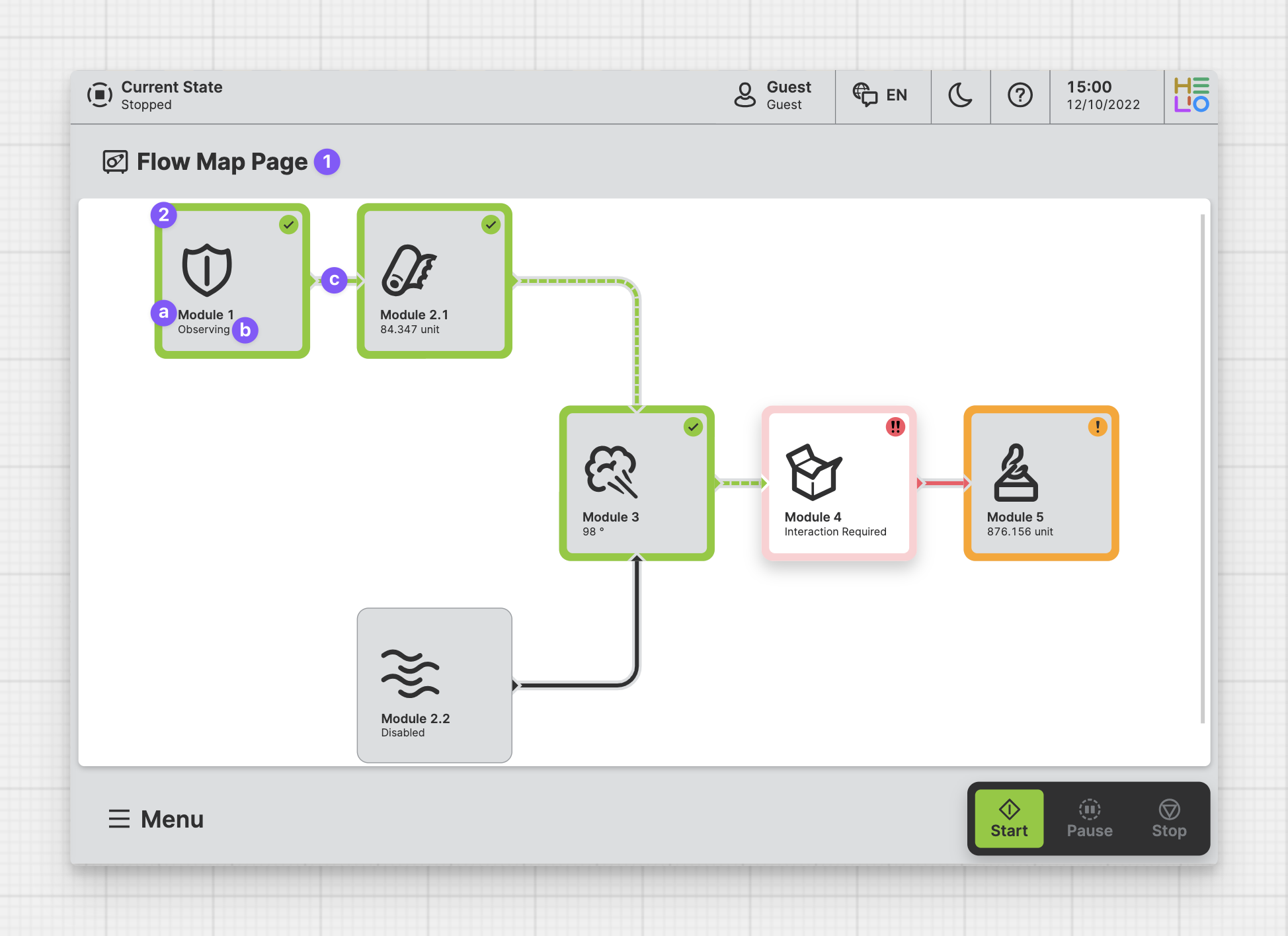 enables you to arrange processes or simplified machine illustrations in a two-dimensional format. - A