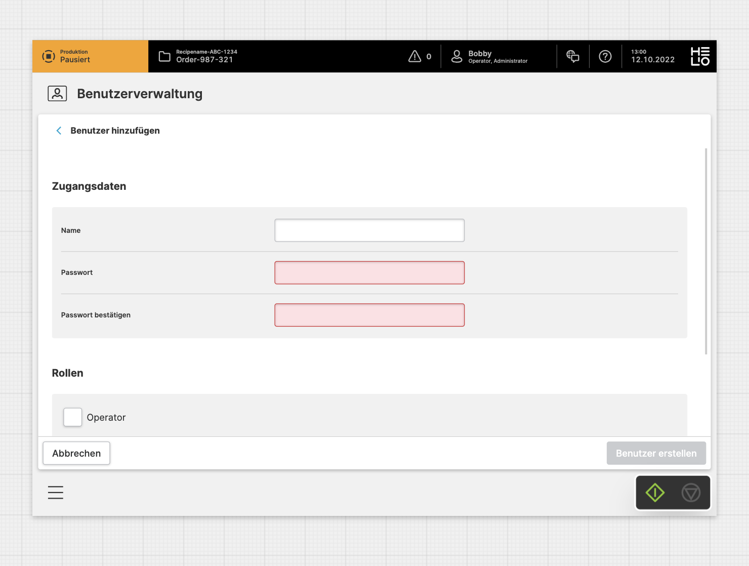 that will be displayed while the User is signed into the HMI. - Enter a strong