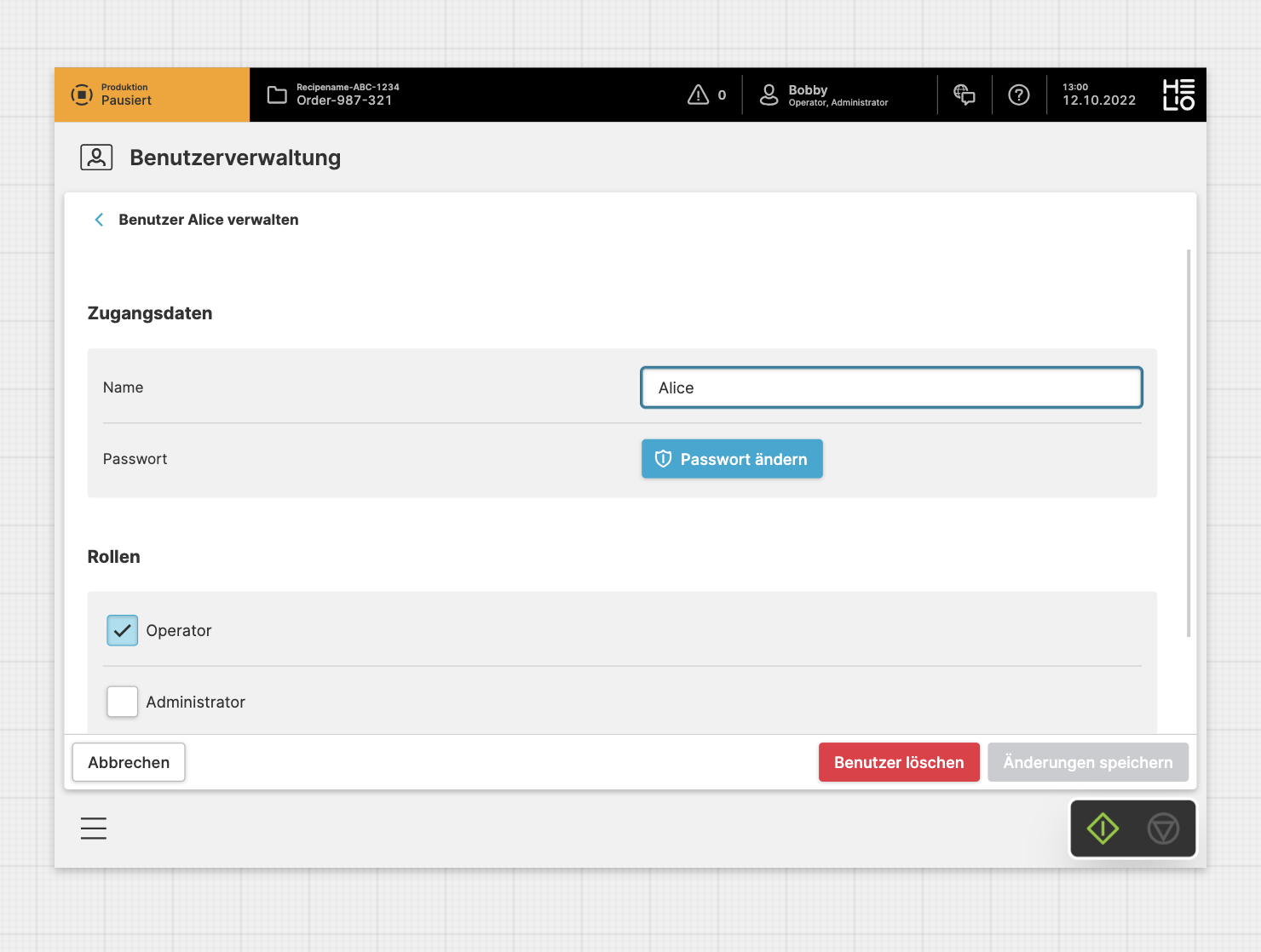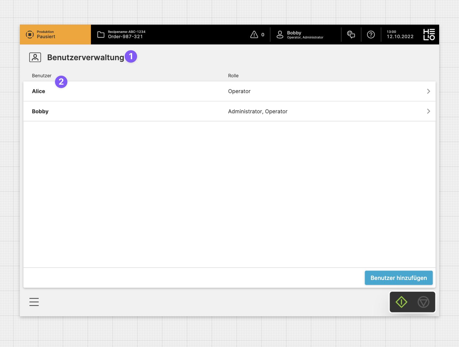 in your HMI to allow administrators to create and delete HMI users without accessing the HELIO IDE. - It also be used to change a user's password in case it is forgotten.