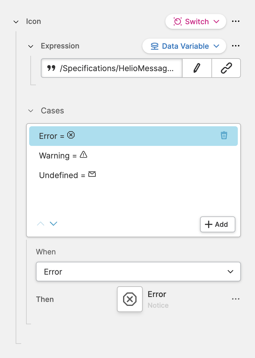 - HELIO compares the value of that expression to different cases.
