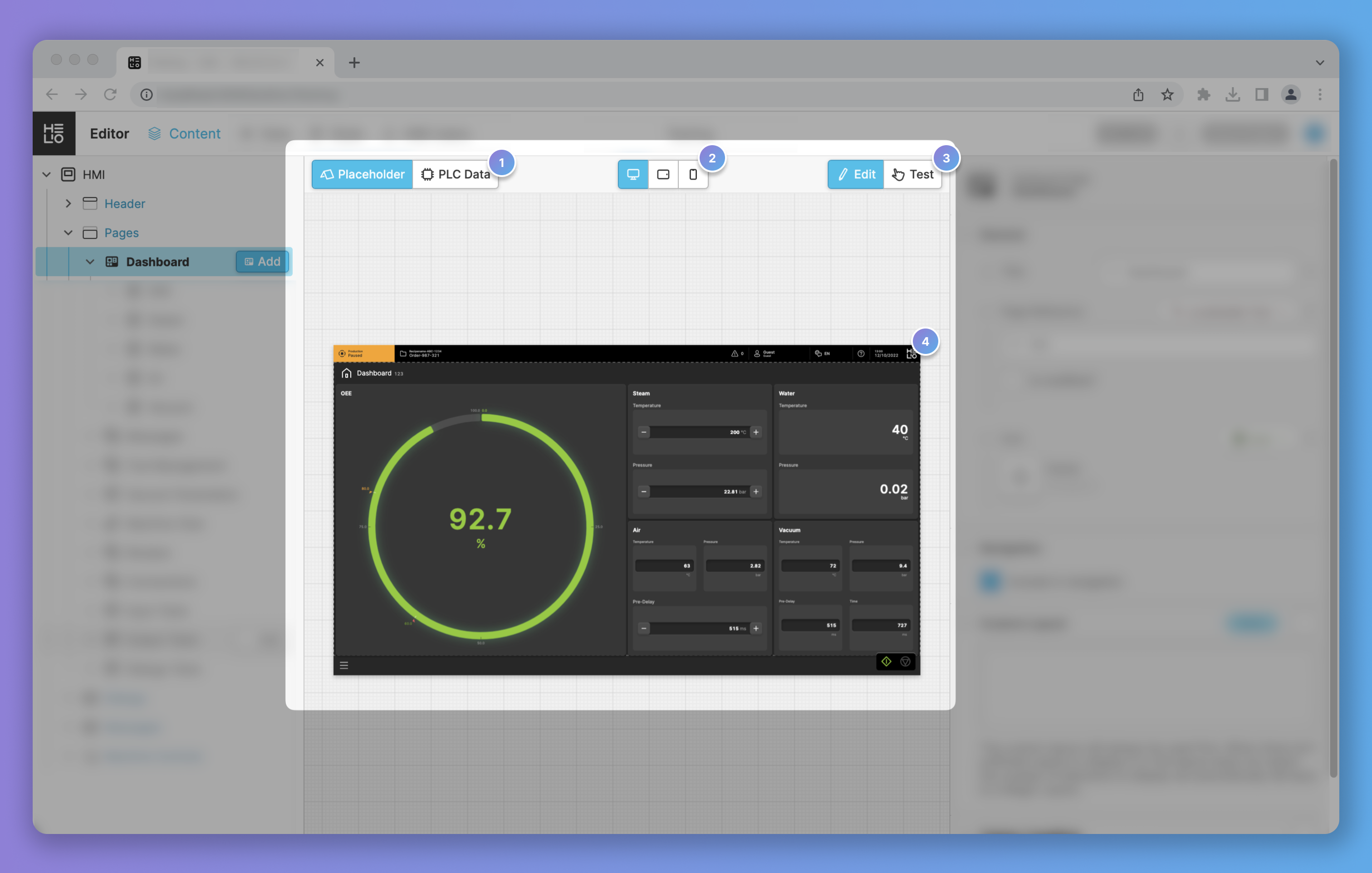 .Live preview of your HMI as you make changes. It will adjust instantly to any modifications you make.