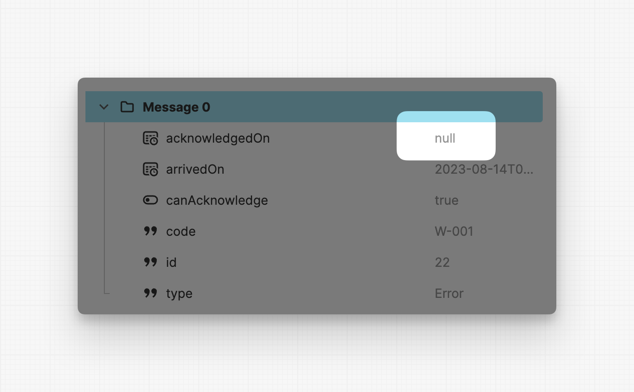 AcknowledgedOn | DateTime | 2023-08-14T06:41:05.935Z | By default this date should be set to the same value as ArrivedOn. As soon as a message has been acknowledged using the AcknowledgeMessage method, update this property to hold the timestamp when the acknowledgement took place. |