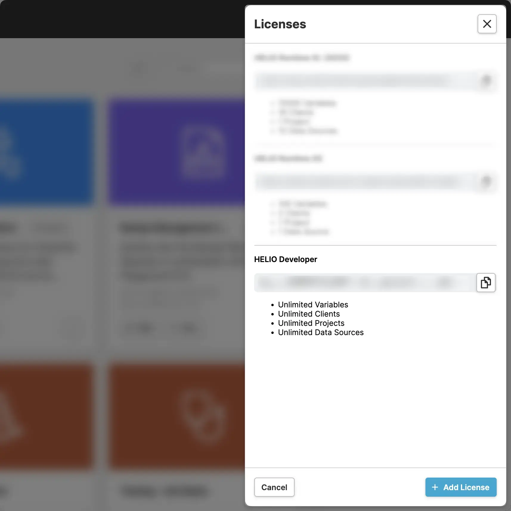 We've enhanced the HELIO Runtime License feedback. Now, you can access more information about all the activated licenses and their features within your current HELIO instance.