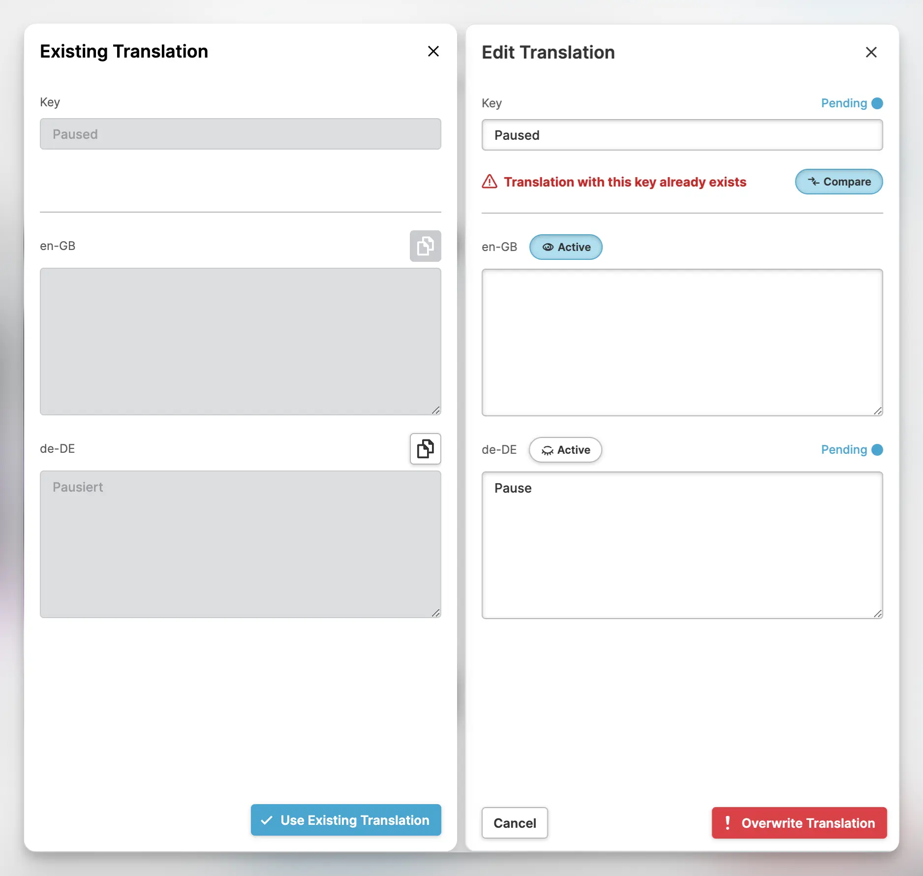 And we've improved the translation conflict feedback in the Translation Quick Editor